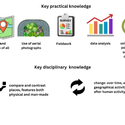 Key geographical skills including observation and recording are developed and built upon with a opportunities to conduct field work in every year group.