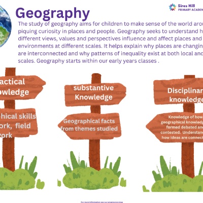 Our knowledge of Geography begins in EYFS, with children exploring the nursery and school environment and maps associated with stories and the wider world.