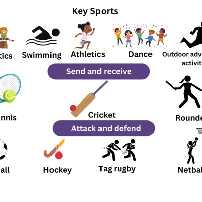 | Nursery | listening skills games | Ball skills | Dance/movement | Travelling/ obstacle courses | Athletics (sports day events) | Gymnastics - role, balances and equipment |