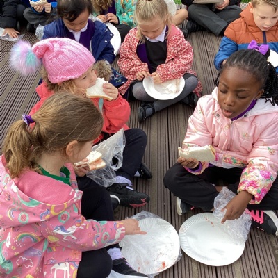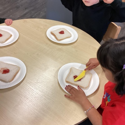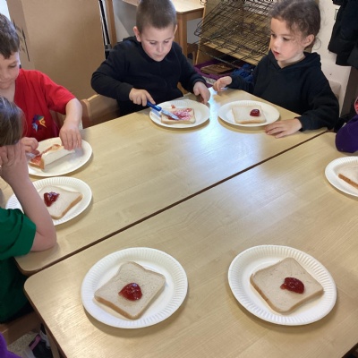 Making jam sandwiches and going on a picnic